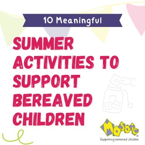 At Mosaic, we encourage families to find ways to honour both joy and grief. It’s okay to laugh and have fun, just as it’s okay to feel sadness or miss someone deeply. These activities are designed to support bereaved children and families, helping you to make the most of summer while gently holding space for the people you miss.